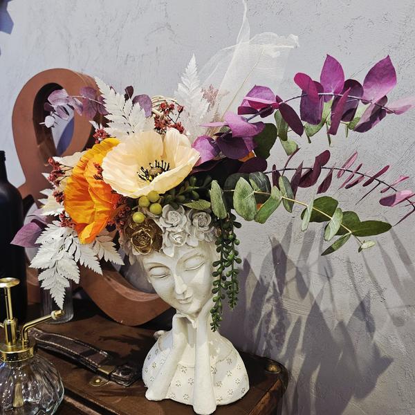 Dans son atelier, elle met également à disposition son talent pour créer des compositions artisanales durables, avec des végétaux séchés, stabilisés et artificiels, dans un univers insolite. Elle propose aussi des éléments de décoration personnalisés confectionnés au tricotin. Ses créations originales constituent des idées déco et cadeaux uniques pour sublimer les intérieurs.