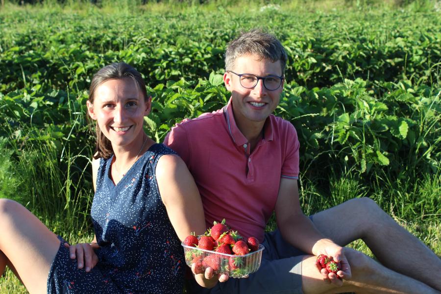 Anne-Charlotte et Arthur Courtier cultivent des céréales en agriculture raisonnée et ont choisi de développer leur cueillette de fraises et framboises, pour être toujours plus proche de leurs clients.