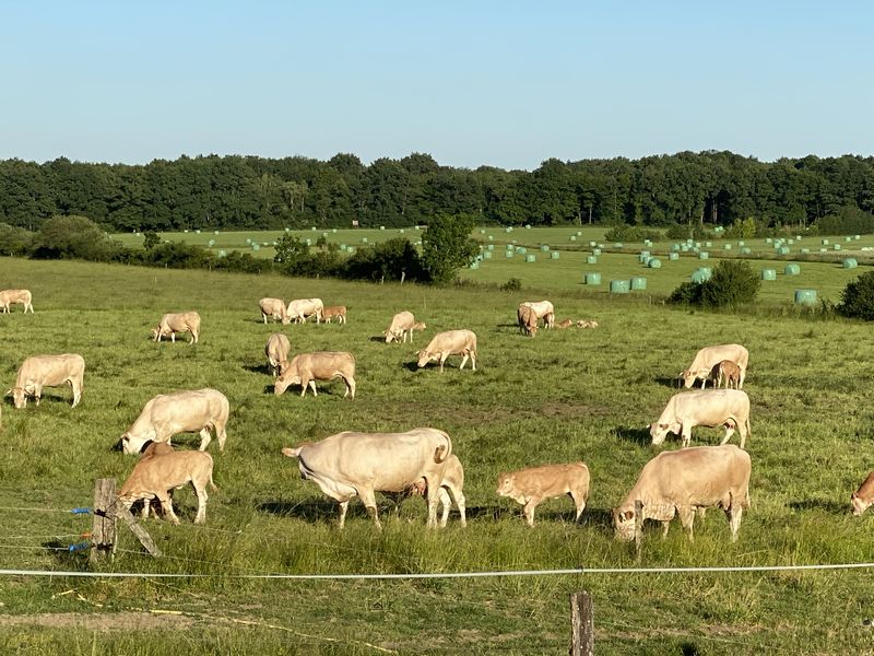 Dans leur ferme de caractère du 17e siècle, l’exploitation de Philippe et Pascale Dufour, spécialisée dans l’élevage bovin, compte en permanence environ 200 Blondes d’Aquitaine (vaches, génisses, veaux et taureaux).