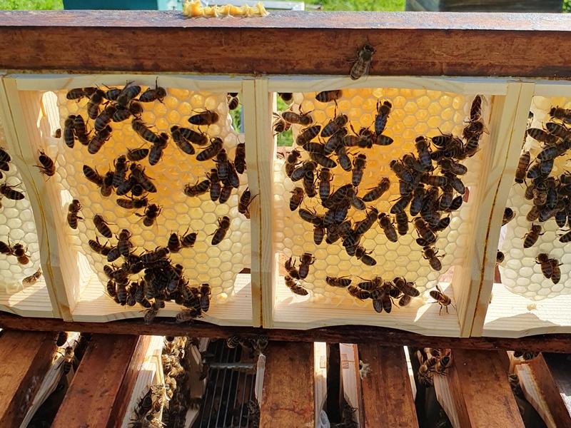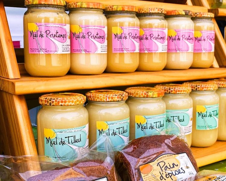 Ici, les abeilles produisent entre autres, du miel de fleurs, de printemps, d’acacia et de superbes rayons de miel.