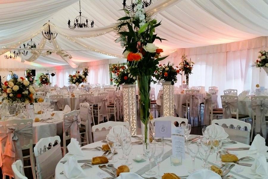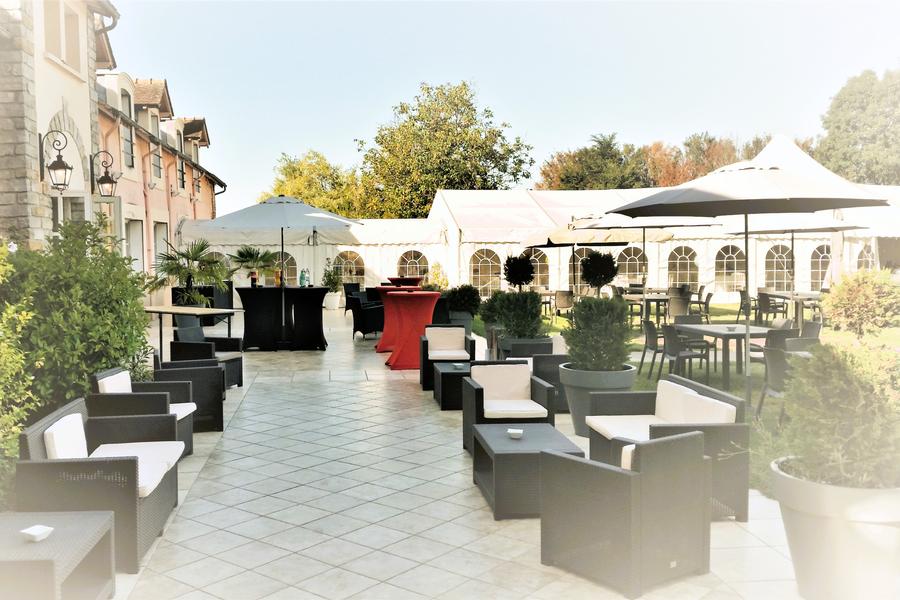 – L’Orangerie : chapiteau chauffé et relié par un dais à la salle principale du Manoir (capacité 150 places assises).