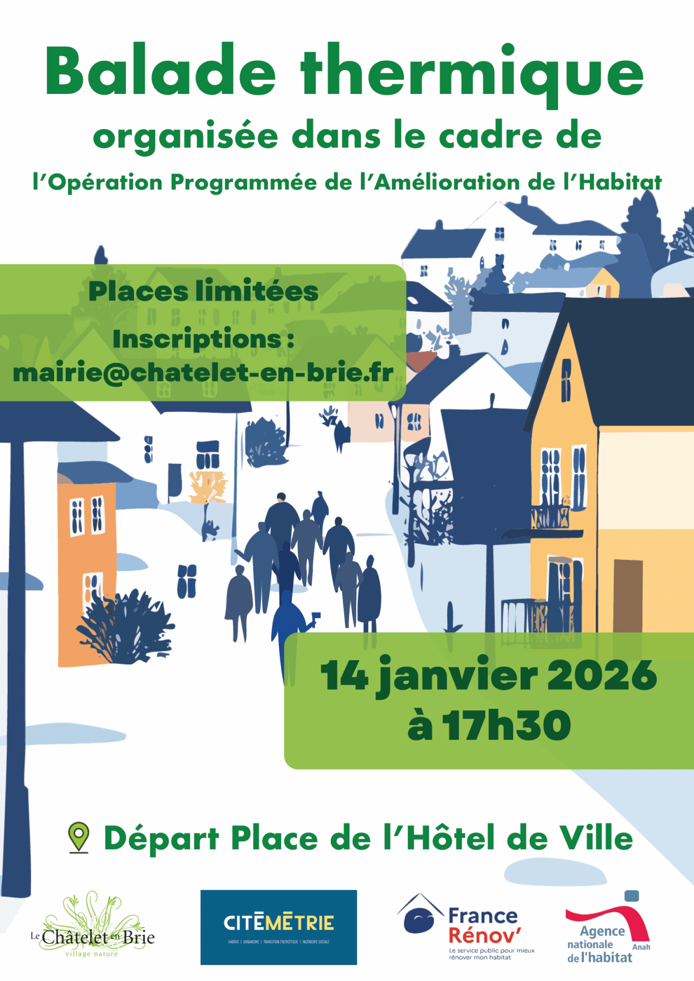 Dans le cadre de l’OPAH, la commune du Châtelet-en-Brie organise une balade thermique ouverte aux habitants.