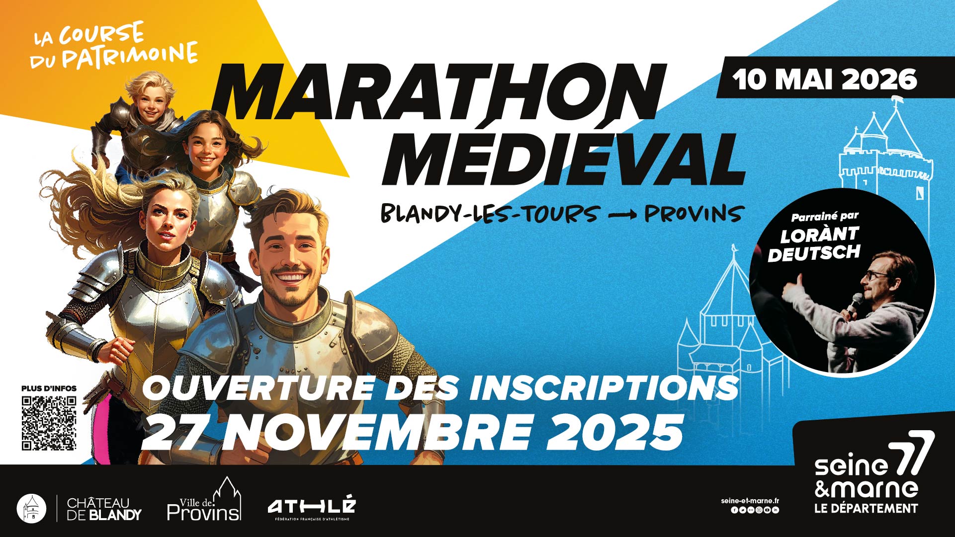 Organisé par le Département de Seine-et-Marne et avec le soutien du ministère de la Culture et de la Fondation du Patrimoine, le Marathon Médiéval associe pleinement le sport à la valorisation et à la transmission du patrimoine historique.
