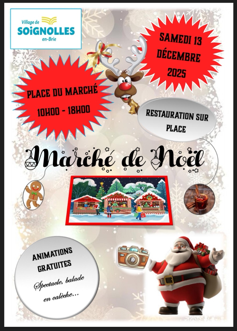 Le marché de Noël se déroulera le samedi 13 décembre 2025, de 10h00 à 18h00, sur la place du marché de Soignolles-en-Brie. Ce jour-là, artisans, créateurs et producteurs locaux seront au rendez-vous pour vous accueillir.