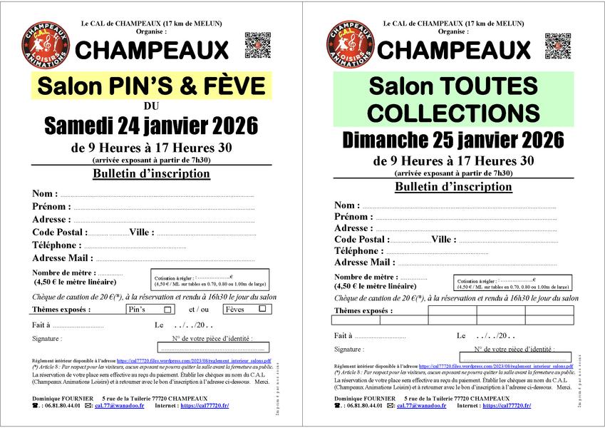 Le CAL organise, le dimanche 25 janvier 2026, un salon Multi-collections (Pin’s, fèves, monnaies, capsules, timbres…) à Champeaux.