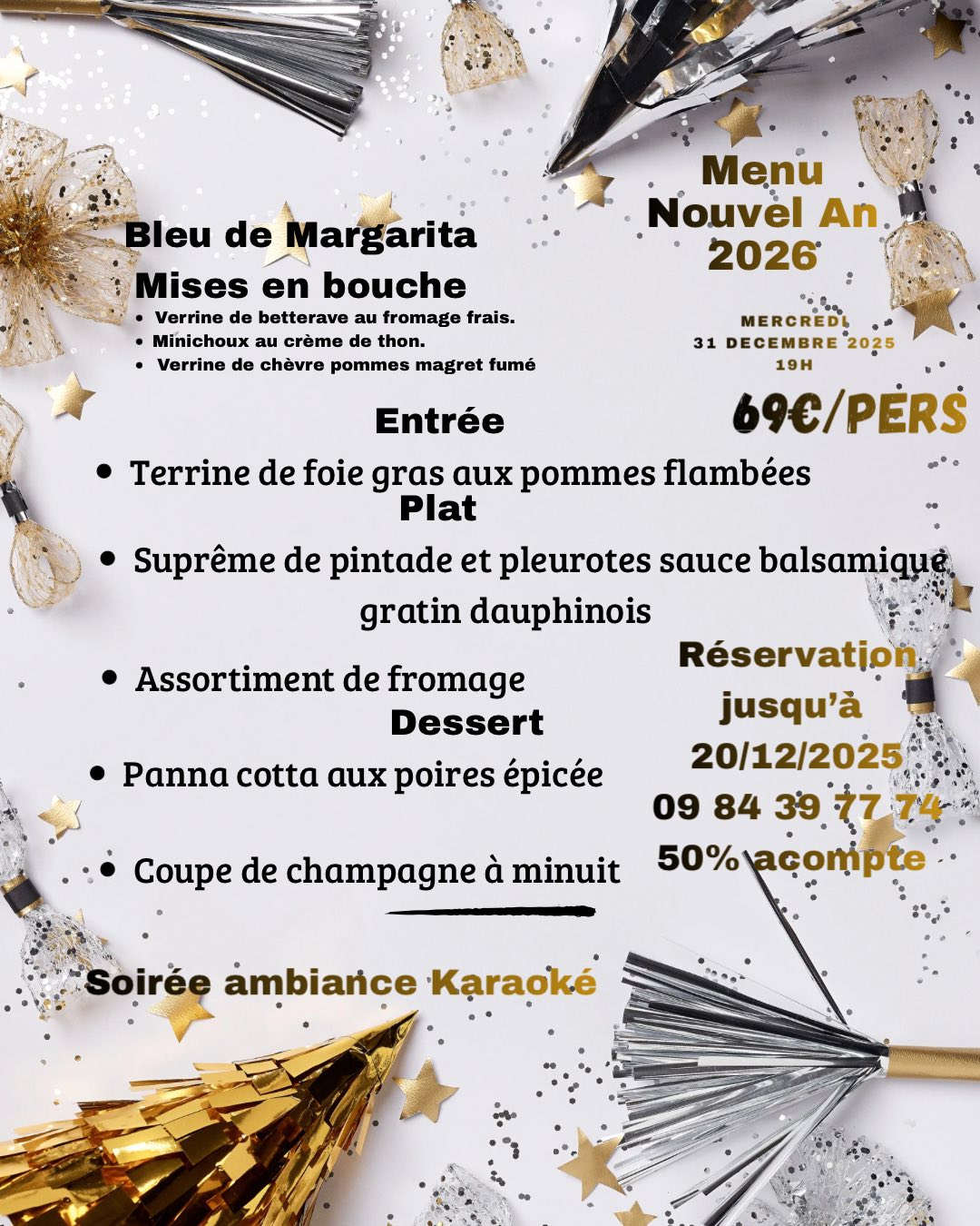 Claudia vous attends pour savourer un menu d’exception spécialement conçu pour ce réveillon de Nouvel An 2025. Réservation obligatoire.