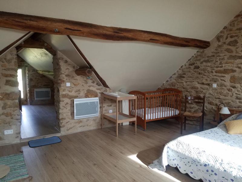 Vous pourrez suivre les sentiers de randonnée balisés qui parcourent les champs et les forêts, flâner le long de l’Yerres ou y pêcher, ou bien vous prélasser dans le jardin entouré de verger. Nombreux producteurs du terroir aux alentours (produits laitiers, volailles, fruits et légumes, miel, farines…). Sites touristiques : Vaux le Vicomte 15km, Fontainebleau 35km, Meaux 40 km et Provins à 45 km. Possibilité de venir au gite en transports en commun : gare de Verneuil l’Etang (à 5 km) puis ligne de bus 21 (Boissy Léger / Verneuil l’Etang). NI SOCIÉTÉS NI DÉPLACEMENTS PROFESSIONNELS – GITE NON FUMEUR Donnant sur la rue, maison de village mitoyenne de construction ancienne et rénovée, située à 100m de celle des propriétaires. Pas de parking privatif mais possibilité de se garer dans la rue ou sur un parking municipal à 50m. A l’arrière du gîte et donnant sur le verger des propriétaires entièrement clos (pommes et coings), joli jardin privatif arboré et fleuri de 225m² avec mobilier de jardin, parasol, barbecue et 2 chiliennes. Au rez-de-chaussée : entrée, petite cuisine équipée avec accès au jardin par une porte fermière, salon/salle à manger avec poêle à bois, canapé et TV, salle d’eau avec WC. A l’étage (barrière de sécurité en haut des escaliers) : pièce palière pentue avec jouets pour enfants, donnant sur une vaste et jolie chambre de 19m², mansardée et ouverte, équipée d’un lit double en 140×190 et de 2 lits simples en 90×200 (pierres apparentes et poutres). – Inclus dans le prix : WIFI. Draps. Linge de toilette. Matériel bébé sur demande : chaise haute, lit à barreaux, table à langer, baignoire, vaisselle. – En supplément : chauffage électrique (au compteur). Taxe de séjour – Prestation optionnelle : forfait ménage (50 €). Caution à remettre à l’arrivée : 300€ 2 nuits minimum toute l’année, sauf l’été.
