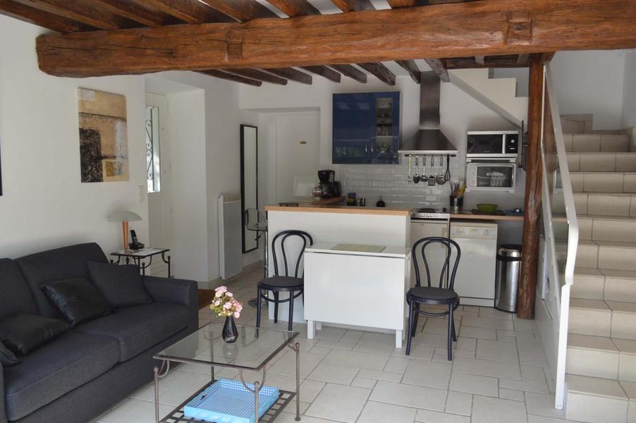 Nichée au cœur d’un hameau tranquille, dans un environnement champêtre et verdoyant, maison ancienne indépendante rénovée avec goût ouverte sur vaste terrasse privative aménagée avec mobilier de jardin et barbecue. Au rez-de-chaussée : pièce à vivre avec espace cuisine équipée ouverte par grande baie vitrée sur la terrasse. TV. WC indépendant. A l’étage : Grande chambre en mezzanine avec un lit double en 140 et une chambre mansardée avec un lit double 140 (TV dans chaque chambre). WC indépendant. Petite pièce dressing. Salle d’eau douche à l’italienne avec lave-linge et sèche-cheveux – Inclus dans le prix : WIFI – Draps (lits faits à l’arrivée) – Lit bébé sur demande – En supplément : Chauffage électrique – Taxe de séjour – Prestations optionnelles : linge de toilette (10€/semaine/pers) .Forfait ménage (60 €) A l’attention des Sociétés et déplacements professionnels : forfait ménage obligatoire (60 €)