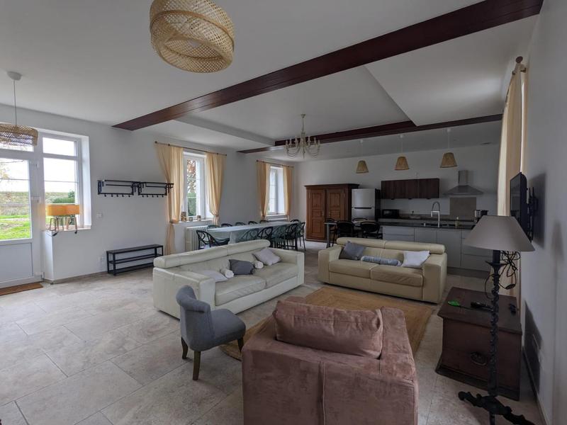 A proximité de la Nationale 36. Les propriétaires habitent sur place. Idéalement situé pour découvrir les richesses de la Seine et Marne et ses environs. Grâce à sa proximité avec les grands axes routiers, il constitue également un choix idéal pour vos déplacements professionnels. Ce gîte est mitoyen à deux autres hébergements. Parking privé extérieur, à l’entrée de la propriété. Les extérieurs sont en cours d’aménagement (printemps 2024). Un espace privatif sera prévu devant le gîte avec salon de jardin, barbecue. Au rez-de-chaussée : grande pièce à vivre avec un coin salon (2 canapés, fauteuil, TV), une grande table pour manger, et une cuisine américaine toute équipée (réfrigérateur-congélateur, four, four micro-ondes, cafetière Nespresso, cafetière classique, lave-vaisselle, lave-linge). Une chambre avec un lit double (160 x 200) avec douche et lavabo. Buanderie. WC.