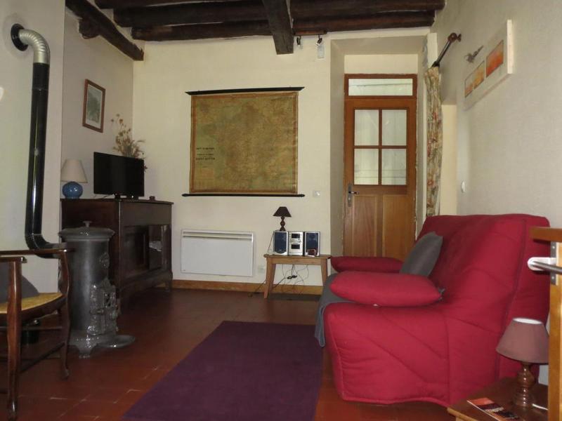 Maison indépendante à côté de celle des propriétaires avec cour fermée (parking voiture), jardin commun avec partie privative, terrasse et meubles de jardin. Bassin non protégé sur le jardin privatif des propriétaires. Au rez de chaussée : séjour avec canapé et poêle décoratif (impossible de l’utiliser), coin cuisine. WC. Au 1er étage : 1 chambre avec 1 lit double, salle d’eau attenante. – Inclus dans le prix : Draps. Internet. Lit bébé et chaise haute sur demande. – En supplément : Chauffage électrique. Taxe de séjour – Prestations optionnelles : Linge de toilette (10 €/personne). Forfait ménage (60 €). A l’attention des sociétés et déplacements professionnels : 1 SEULE PERSONNE et forfait ménage obligatoire (60 €).