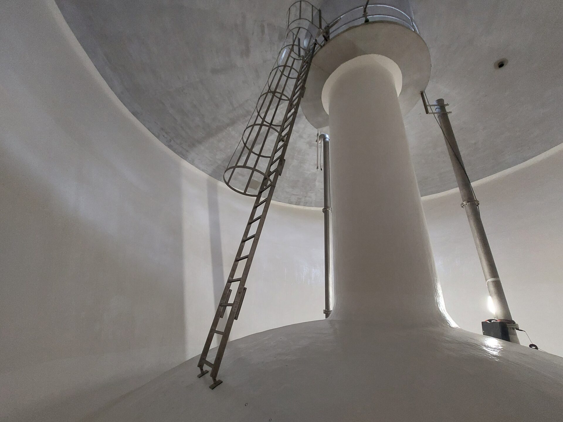 D’octobre 2022 à juin 2023, le réservoir d’eau potable de la commune de Guignes a connu d’importants travaux de son pied à son sommet, à l’intérieur comme à l’extérieur – comprenant la réfection de son étanchéité, le renforcement de la structure, la reprise des enduits et peintures, des tuyauteries et de la serrurerie.