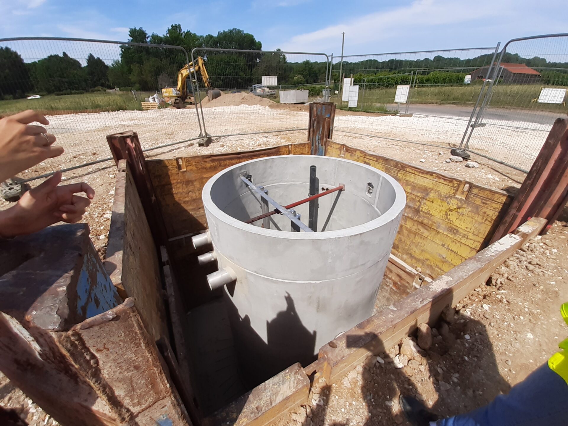 • La construction de la nouvelle station, intégrée à son espace naturel et répondant aux normes définies pour la zone, fortement éloignée du bassin d’orage et nécessitant un forage pour passer les canalisations sous la rivière de l’Yerres