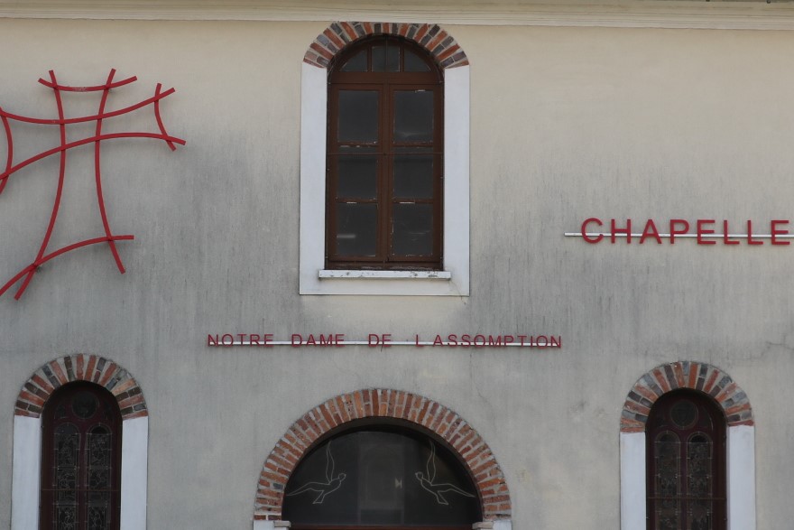 Construite dans le corps Ouest de l’ancien relais de poste, la chapelle Notre-Dame-de-l’Assomption à Pamfou intègre la voûte plein cintre de brique qui est présente en fenêtre sur le corps Est.